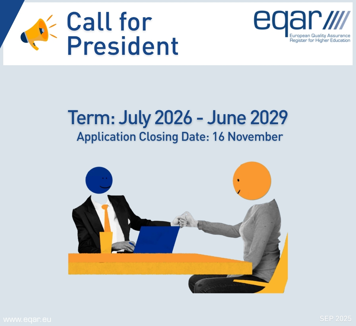 There is still time to apply, until 16 November, for the position of EQAR President. We are looking for a suitable individual to fill the position of President for the term 1 July 2026 until 30 June 2029.