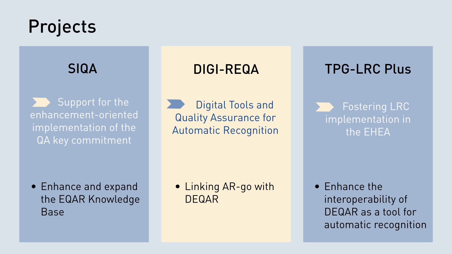 EQAR is project partner in three recently launched projects, co-funded by the European Union through the Erasmus+ programme. One project focusses on automatic recognition (DIGI-RECA) and two on supporting the following two (out of three) key commitments, affirmed by EHEA ministers to be preconditions for the successful development and innovation of the EHEA: